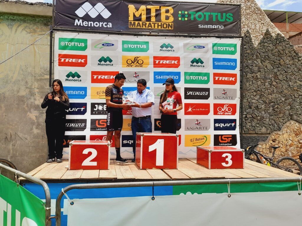 Alcalde de Antioquía premia a ciclistas en el Apu PARIAKAKA en la competencia ( PODIUM – MARATHON MTB PACHACAMA – ANTIOQUIA )