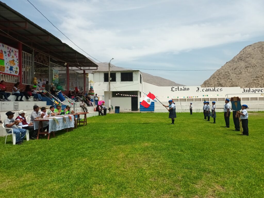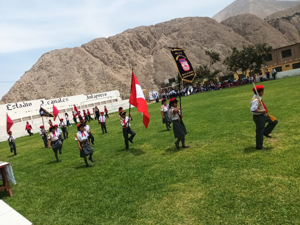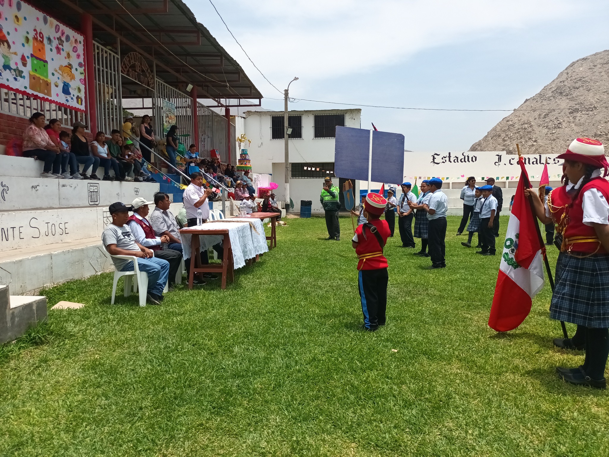 HACE LA ENTREGA DEL GALLARDETE A LA I.E SAN JOSE DE NIEVE-NIEVE QUE OBTUVO EL 1°PUESTO EN EL CONCURSO DE ESCOLTAS.