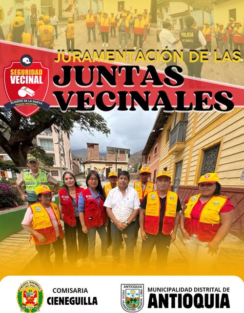 La Policía Nacional del Perú – Comisaría PNP Cieneguilla, a través de la Sección Policía Comunitaria, invita a todos los integrantes de las Juntas Vecinales y vecinos del distrito a participar en la ceremonia de juramentación de las juntas vecinales: