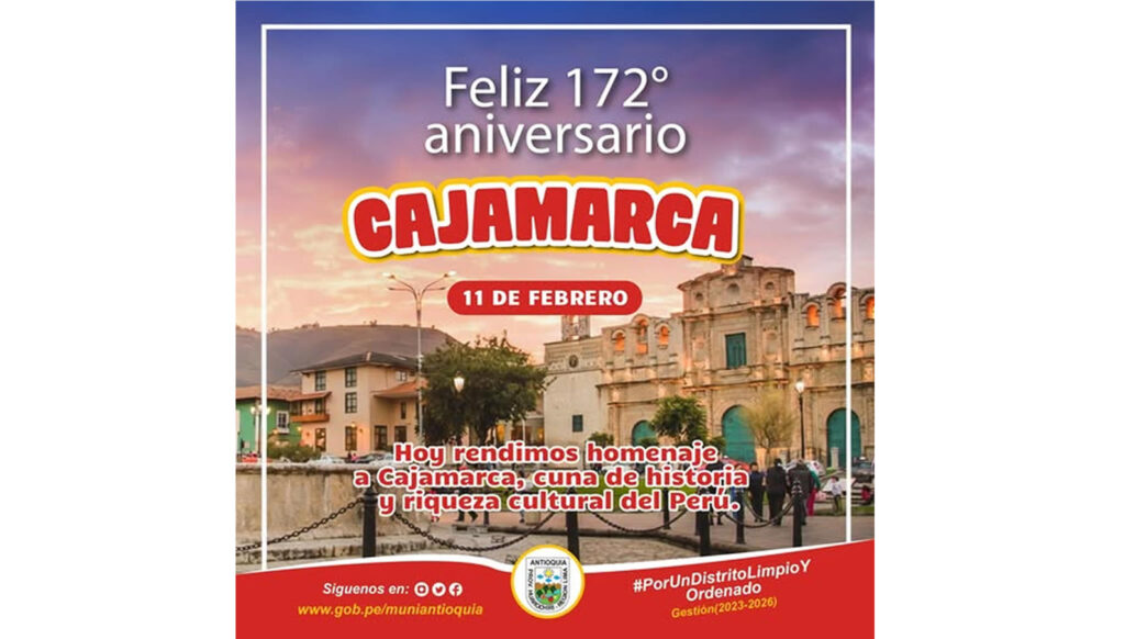11 Feb Actividades y Noticias 11 de febrero – Fundación de Cajamarca febrero 17, 2026 By leonid olivera 0 comments Hoy conmemoramos la fundación Cajamarca tierra histórica y cultural que ha sido escenario de importantes acontecimientos en la hist...Continue reading