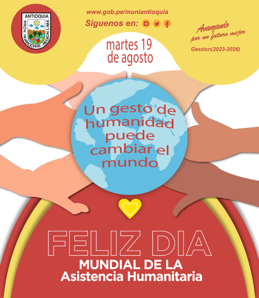 19 Ago Actividades y Noticias 19 de Agosto | Día Mundial De La Asistencia Humanitaria septiembre 9, 2025 By leonid olivera 0 comments 19 de agosto | Día Mundial De La Asistencia Humanitaria Hoy rendimos homenaje a quienes, con valentía y entrega, ext...Continue reading