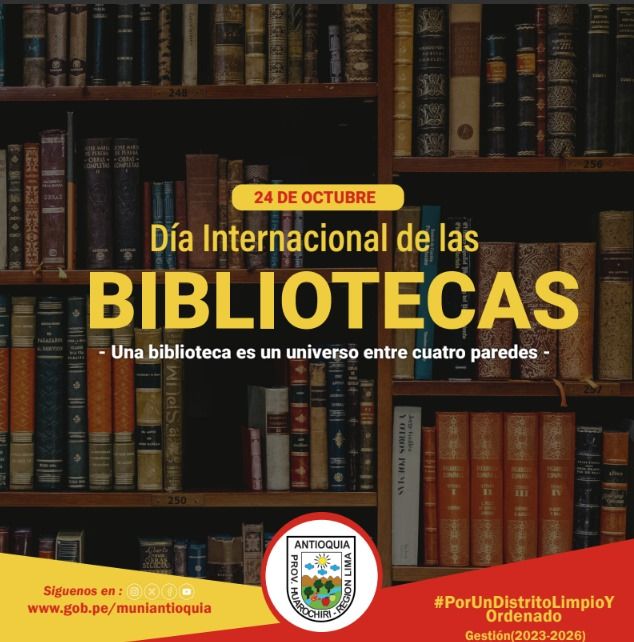 24 Oct Actividades y Noticias Feliz Día Internacional de las Bibliotecas. octubre 28, 2025 By leonid 0 comments Feliz Día Internacional de las Bibliotecas | 24 de octubre. La Municipalidad de Antioquia, a través de su alcalde, regid...Continue reading