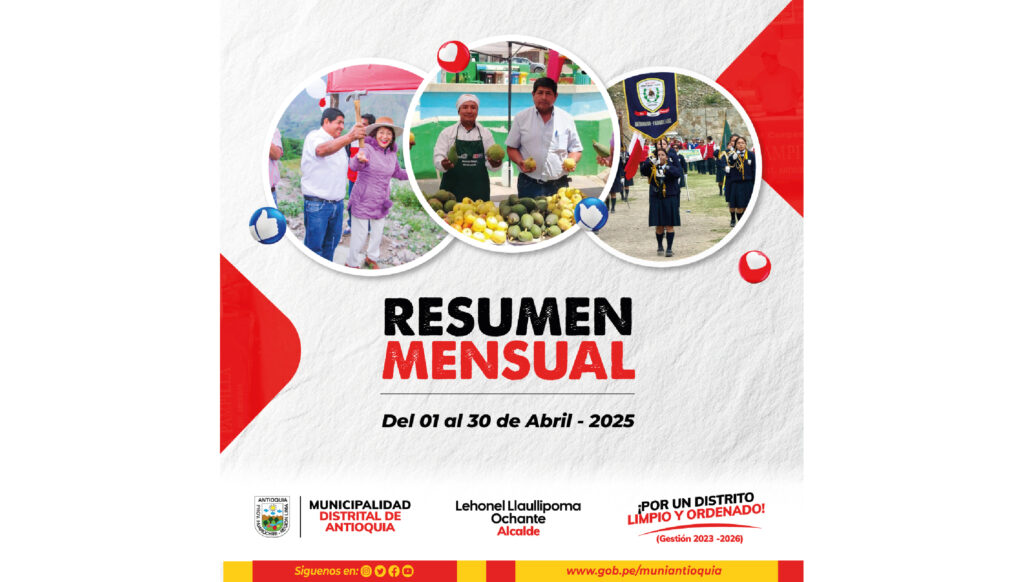 26 Dic Actividades y Noticias RESUMEN MENSUAL – ABRIL | febrero 11, 2026 By leonid 0 comments ¡UN MES DE LOGROS Y COMPROMISO EN ANTIOQUÍA! Bajo el liderazgo de nuestro alcalde Lehonel Llaullipoma, seguimos trabajando sin...Continue reading